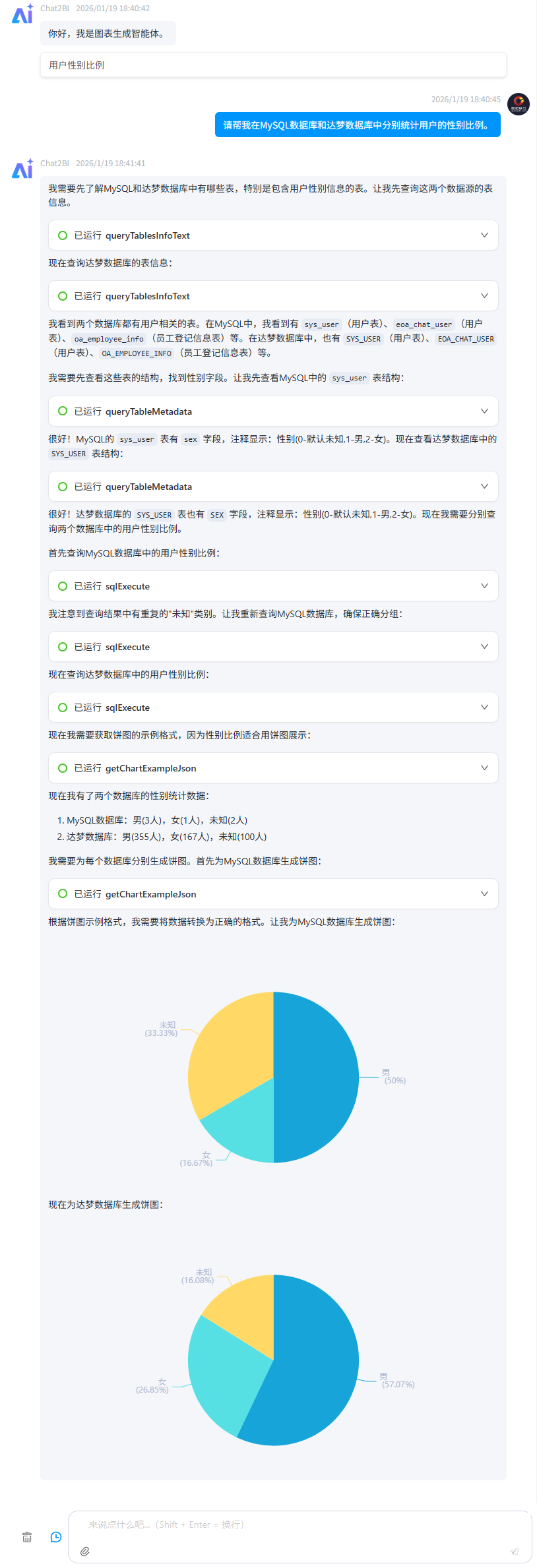 数据源名称不需要说的很精准,假如数据源里配置的名称是本地达梦,但只要说达梦数据库、达梦等,智能体都能识别。