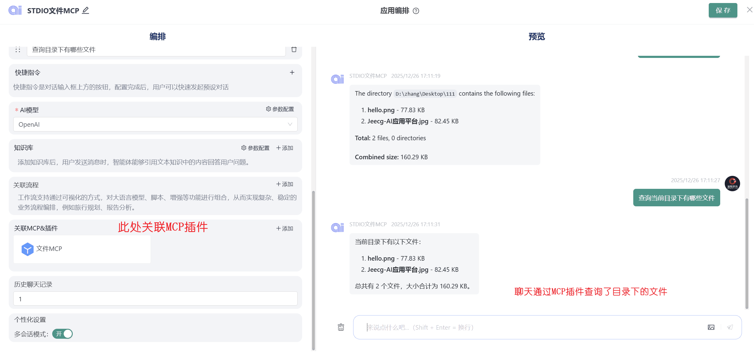 通过聊天可以实现对本地文件系统的访问:查询这个文件夹下有哪些文件、创建一个文件夹等