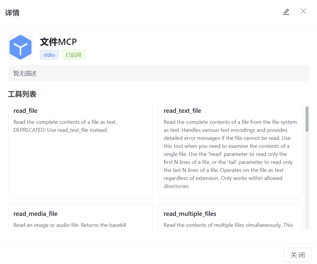 保存后点击"同步"按钮,系统会自动获取该 MCP 服务器提供的工具列表和能力。