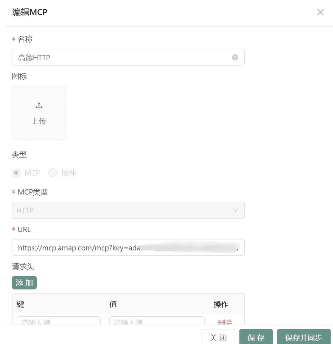 以高德地图 MCP 服务为例,演示如何配置 HTTP 协议的 MCP 服务器。