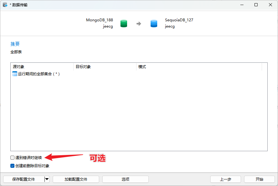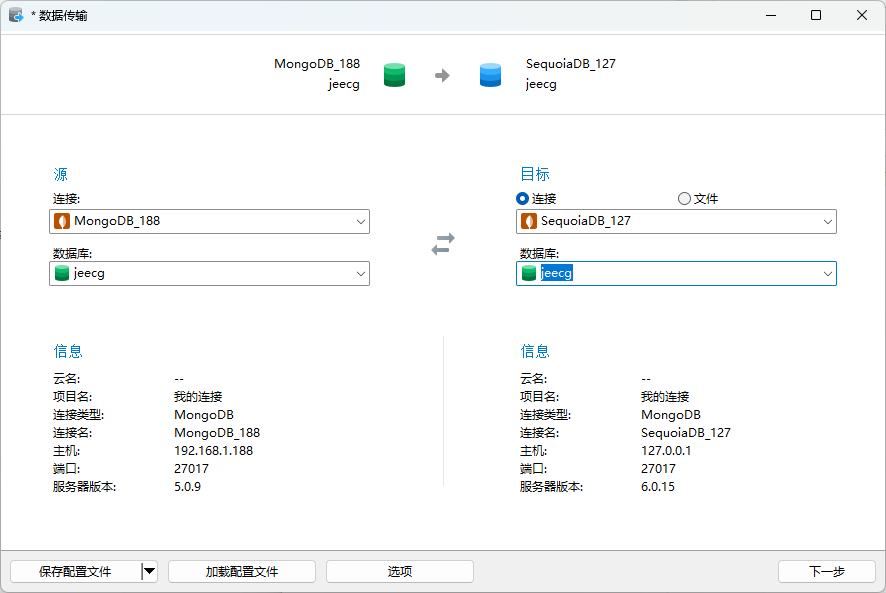 选择原来的MongoDB数据库和目标的巨杉数据库