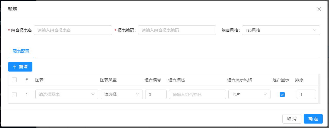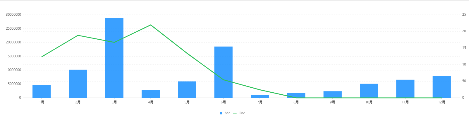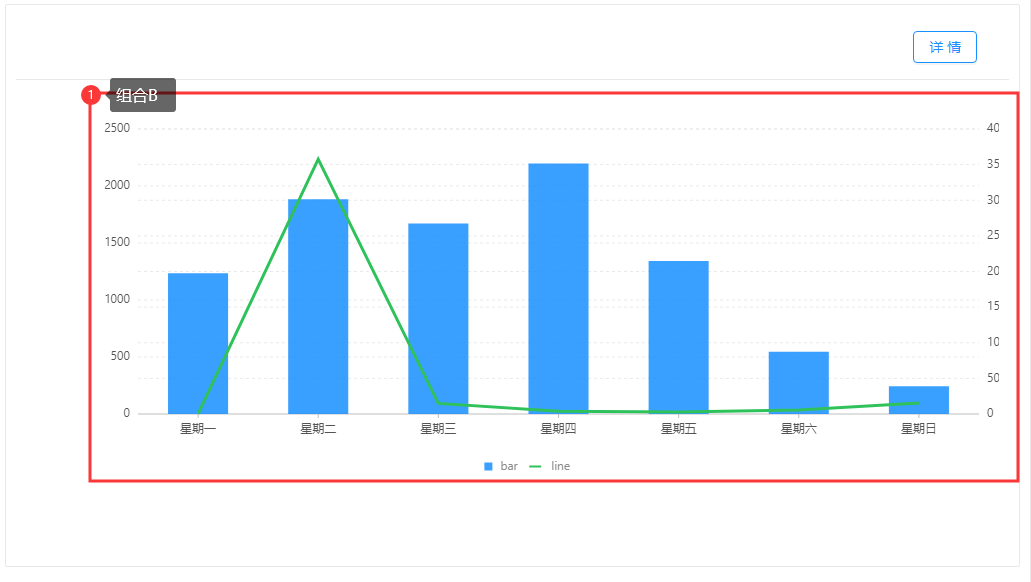 组合报表就是将两个报表合成一个报表,分别展示为柱状图和曲线图