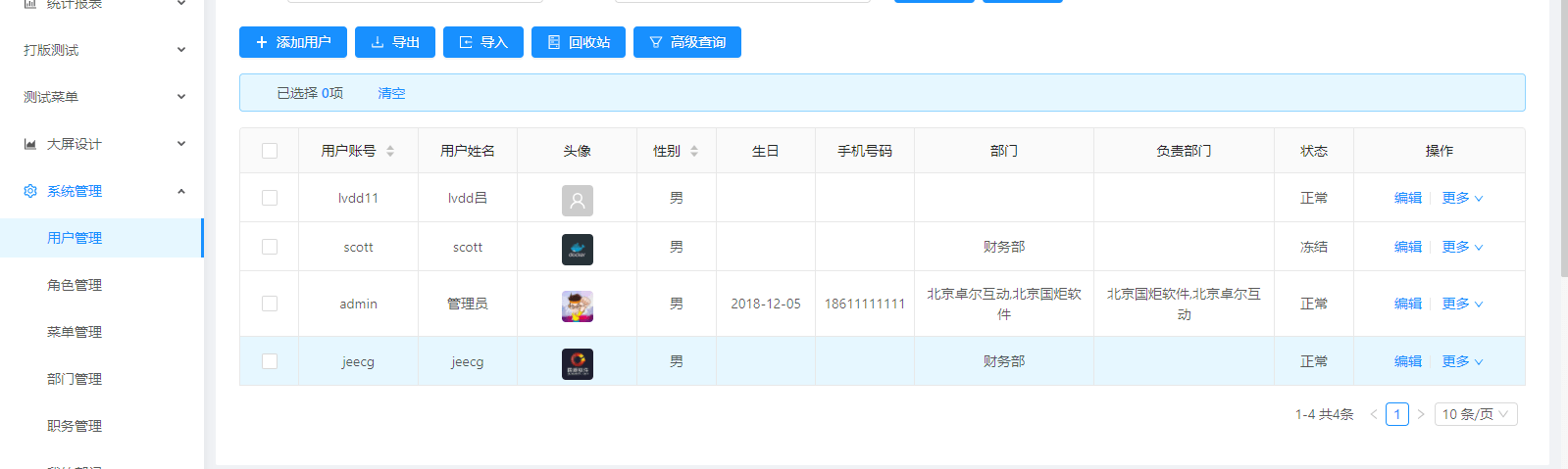 退出重新登录,访问用户管理界面发现数据被过滤了,只看到男的数据,说明权限生效!
