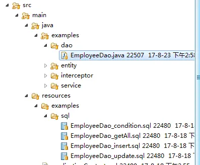 SQL文件目录规则,与minidao接口保持相同目录(或者放在对应resource目录下)